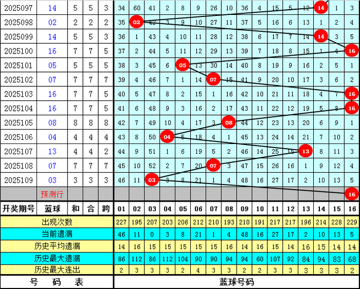 蓝球分析:最近7期蓝球号码012路比为1:5:1,奇偶比为3:4,大小比为3:4,本期重心温雅大号蓝球出现,独蓝参考16。