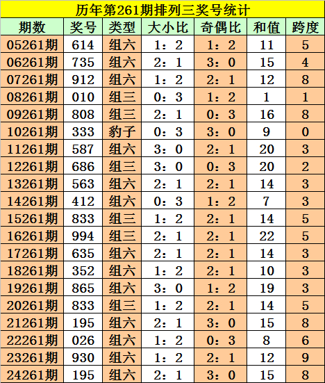 积年第261期罗列三奖号:614 - 735 - 912 - 010 - 808 - 333 - 587 - 686 - 563 - 412 - 833 - 994 - 635 - 352 - 865 - 833 - 195 - 026 - 930 - 195。